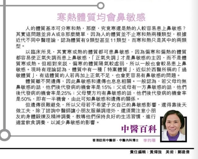 此外,鼻敏感一般都可用針灸治療,中藥劑配合針灸治療效果會更好,建議諮詢註冊中醫師。
